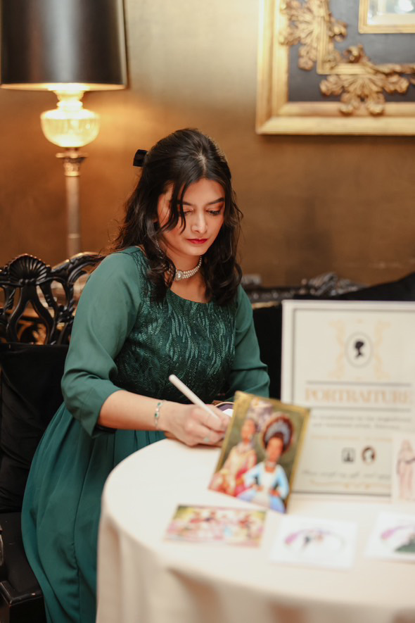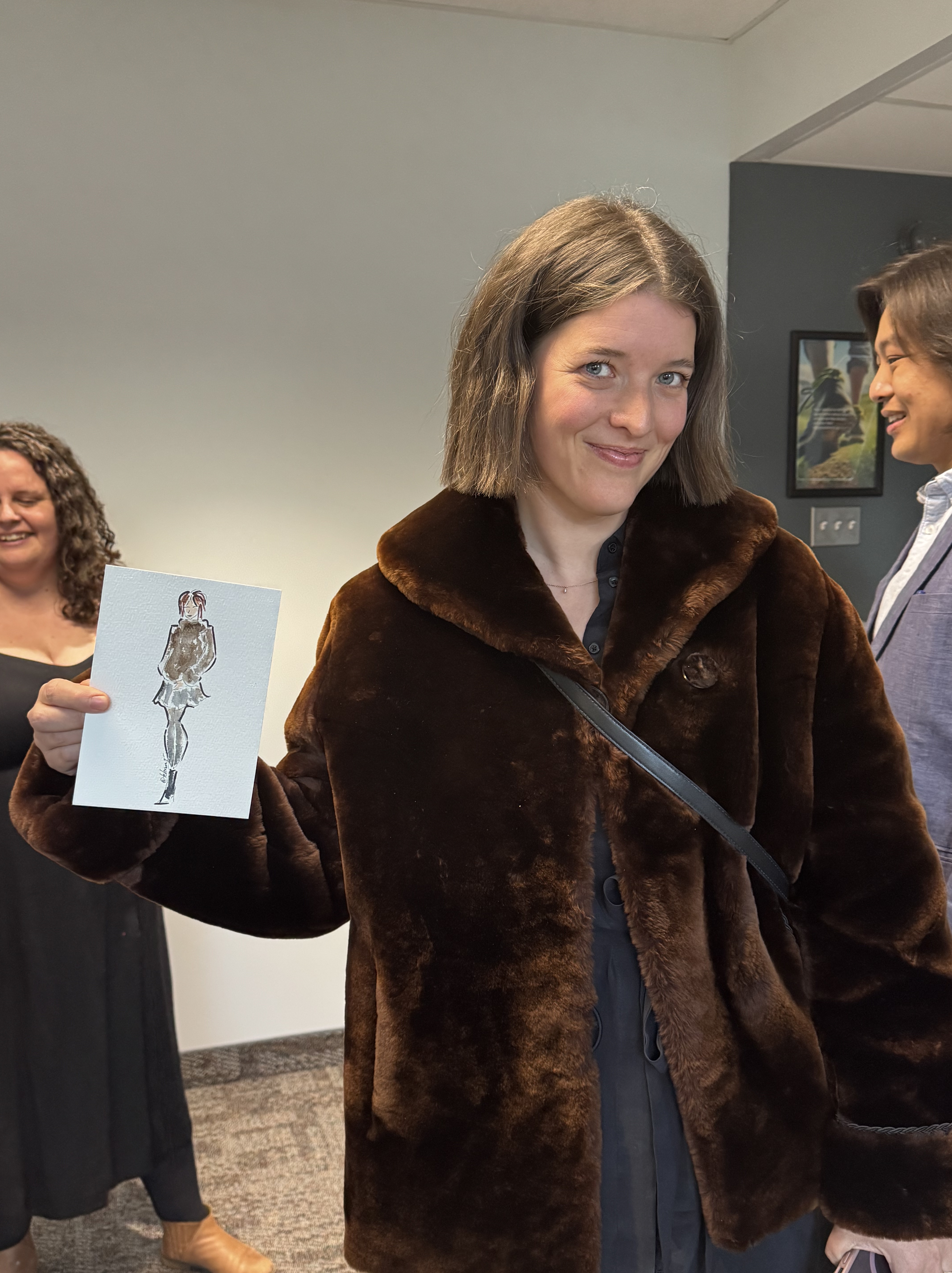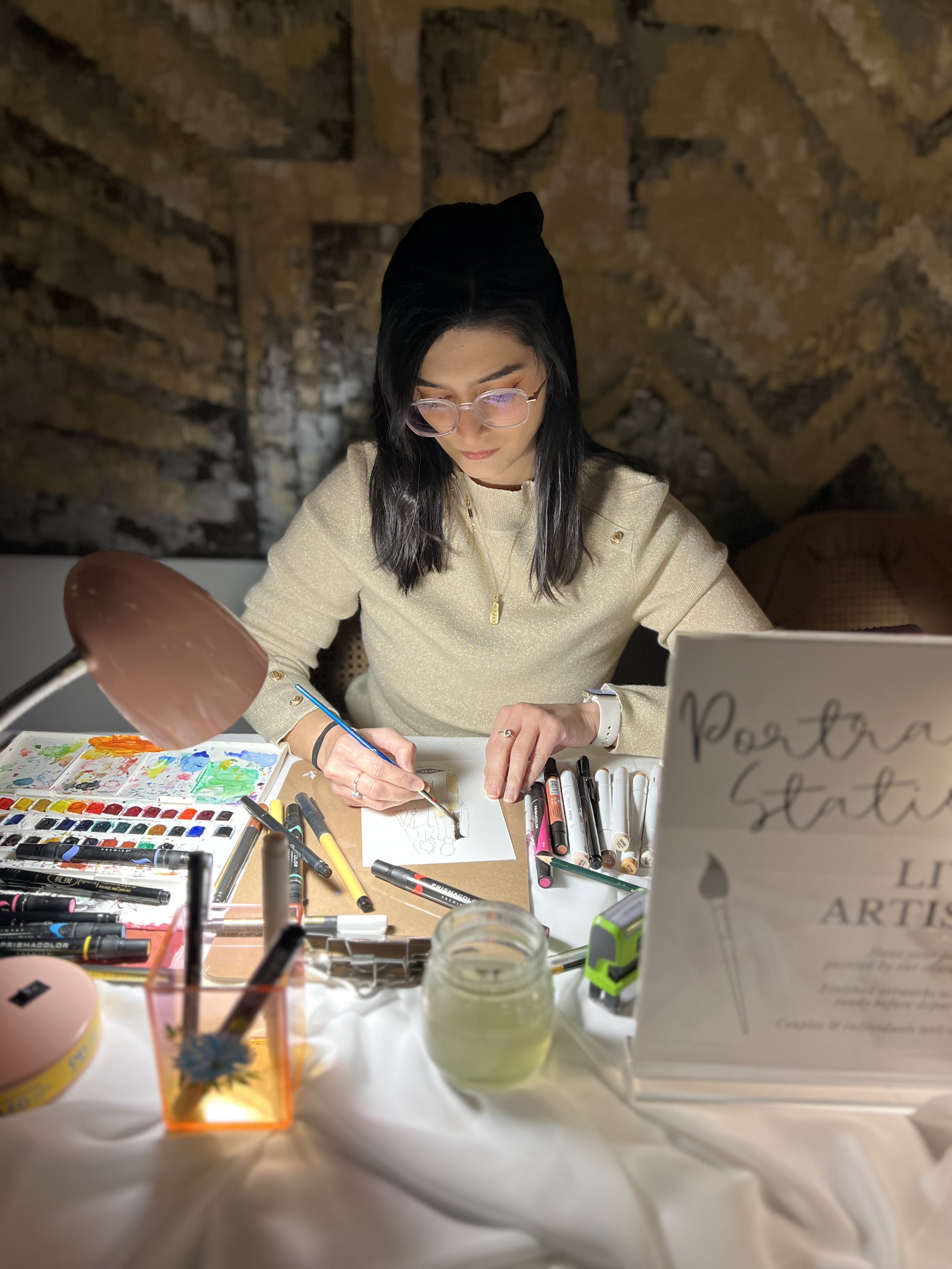 Guests love watching the sketches come to life and seeing how outfits, hairstyles, and accessories are captured in a fashion illustration style. It often becomes a small gathering point at the reception where people stop by, watch the artwork, and get excited to see their own sketch.