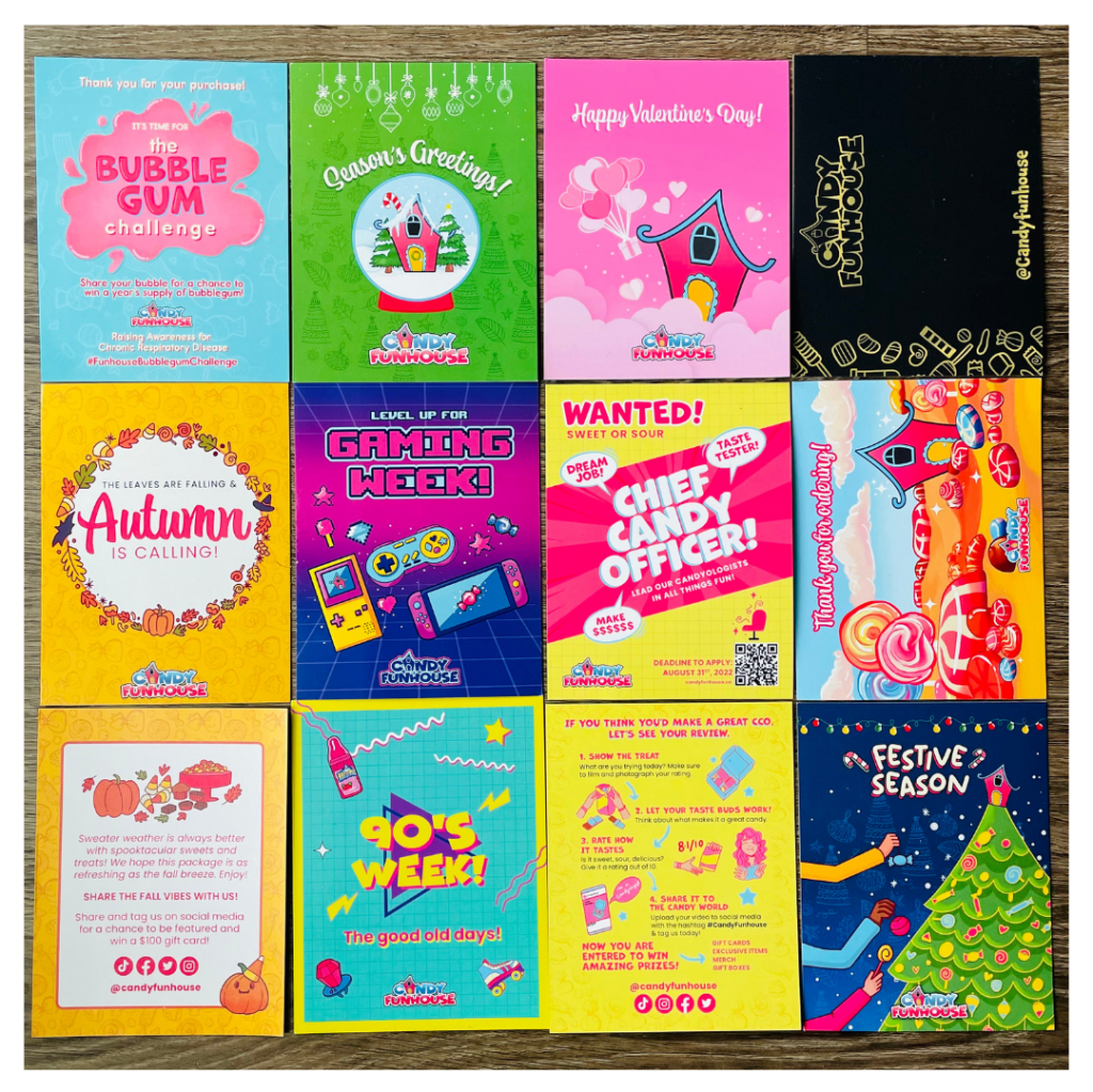 During my time at Canada’s Largest Online Candy store, Candy Funhouse as their creative manager, I designed monthly themed post cards for the customers. Each theme was translated into the website banners and social media posts as well. My postcard would set the tone for the overall design language for the month. Our goal was to incorporate pop culture themes.