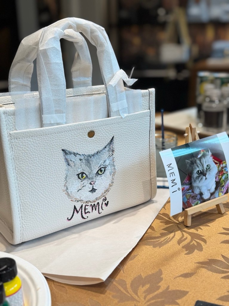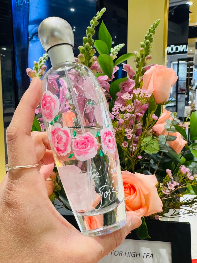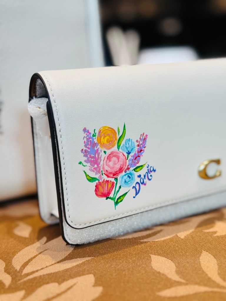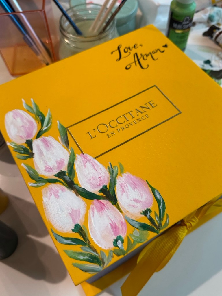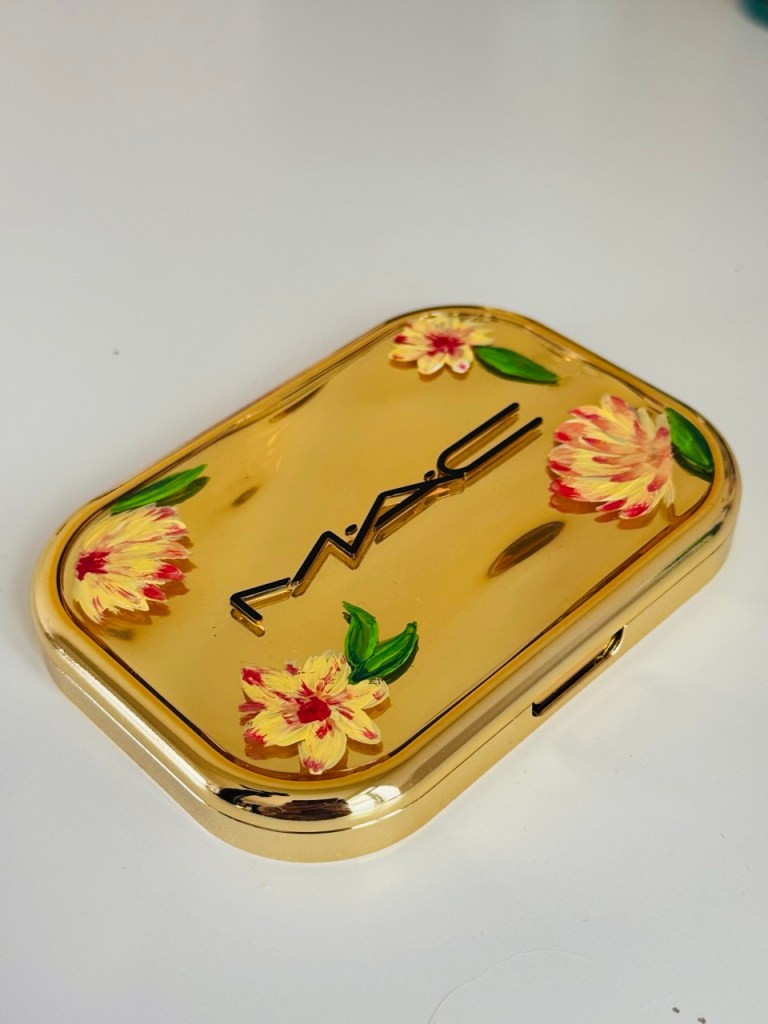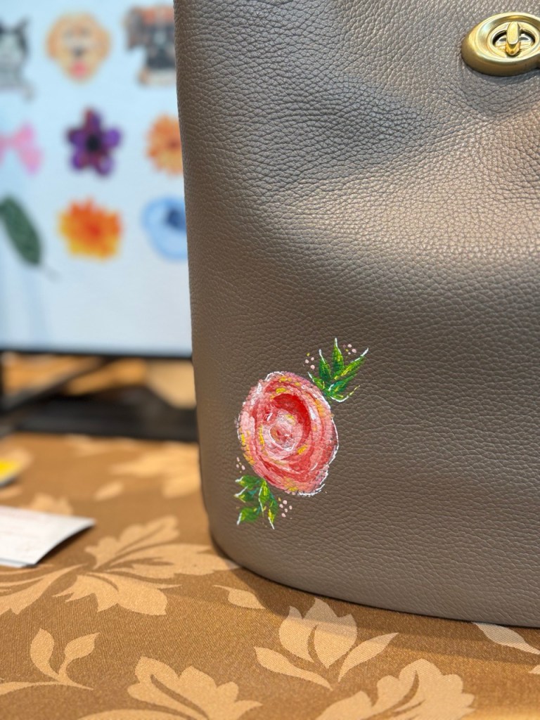 Prior to beginning the product painting process at a store or brand event, I ensure having a small table alotted to me where I can setup. My setup includes paints, paint brushes, inspirational material, my small signage, a mat to protect your furniture and lots of samples. It’s always important to observe professionalism and not create a mess.